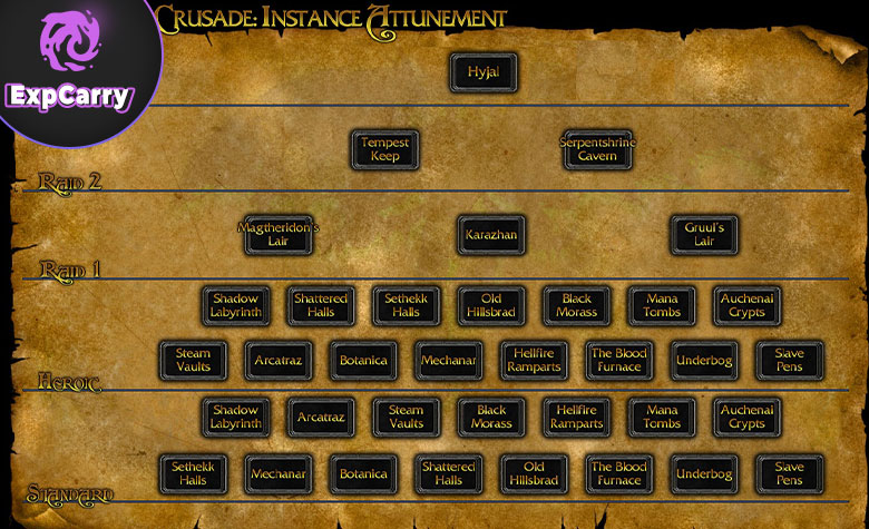 In TBC bedeutet „Heroisch-Freischaltungen“, eine Rufanforderung bei der mit dem Dungeon verbundenen Fraktion zu erfüllen, damit ihr den heroischen Schlüssel vom Rüstmeister dieser Fraktion kaufen könnt. Zusätzlich haben einige Dungeons einmalige Zugangsschritte für den Dungeoneingang selbst. Das ist getrennt vom System der heroischen Schlüssel.