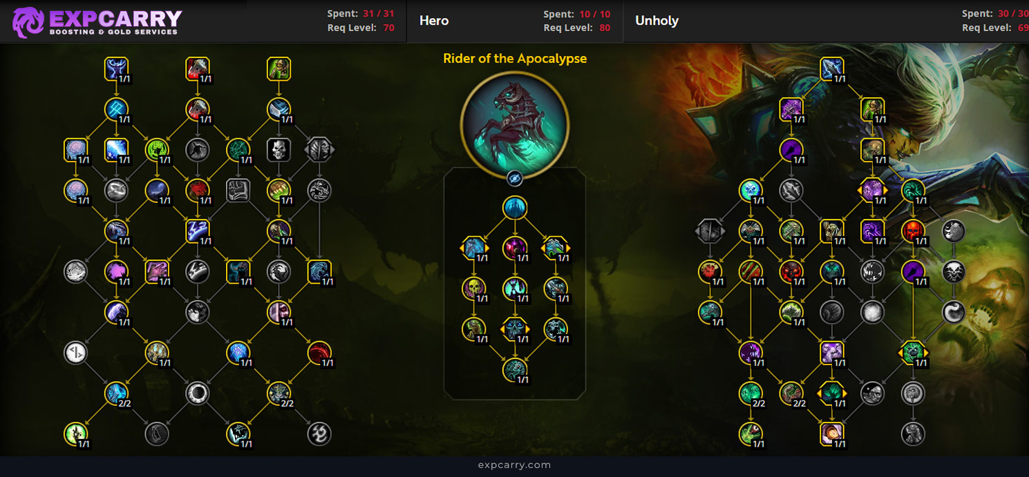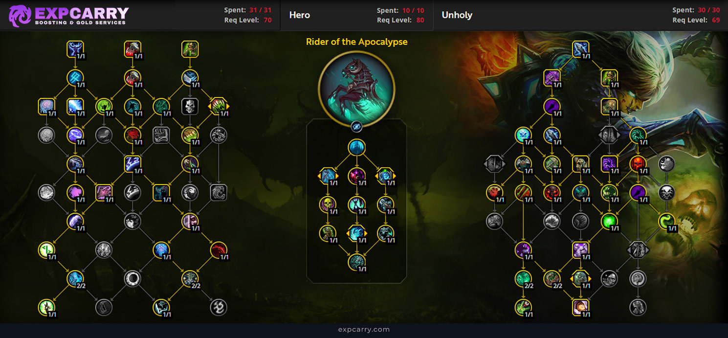 - Aktiviere Unheilige Verseuchung und Apokalypse (verschmilzt mit Finsterer Verwandlung).