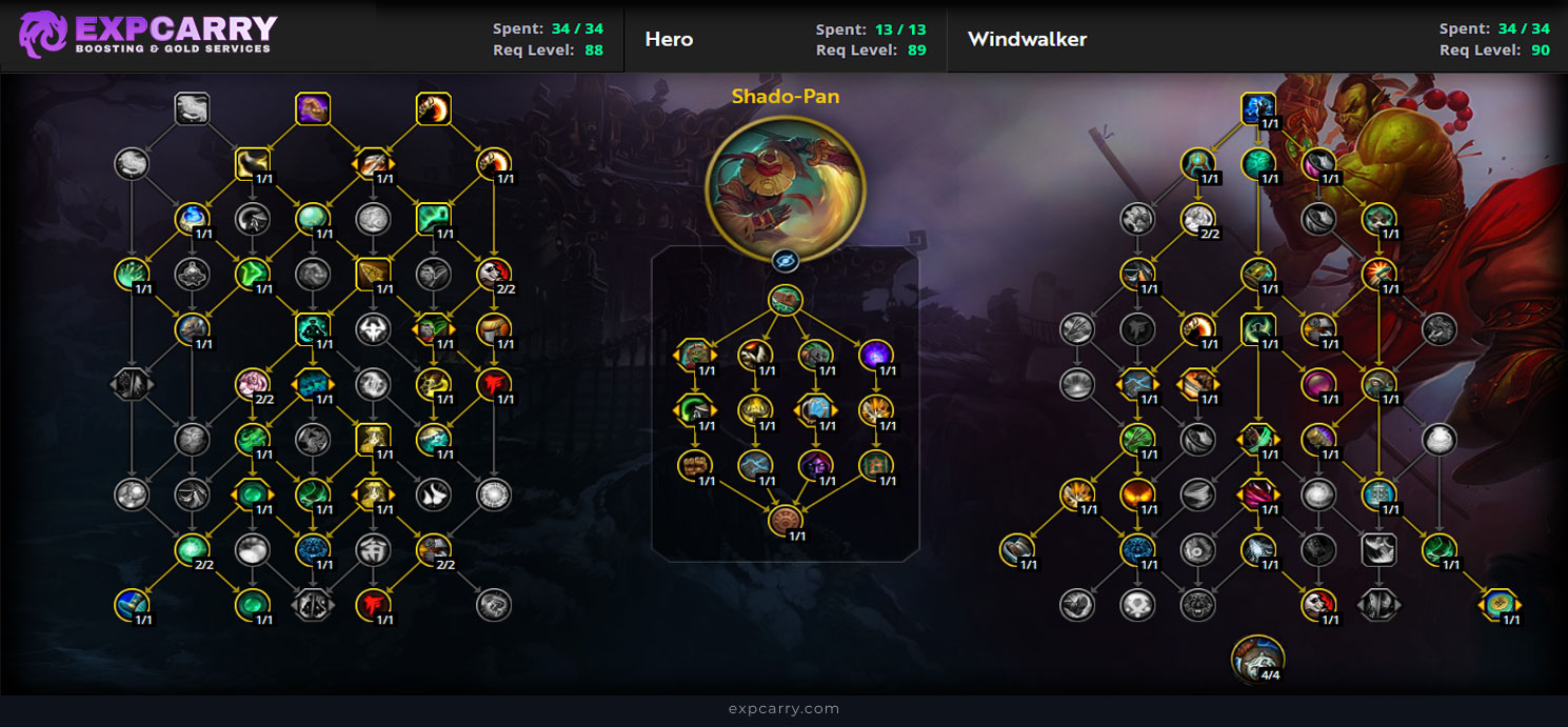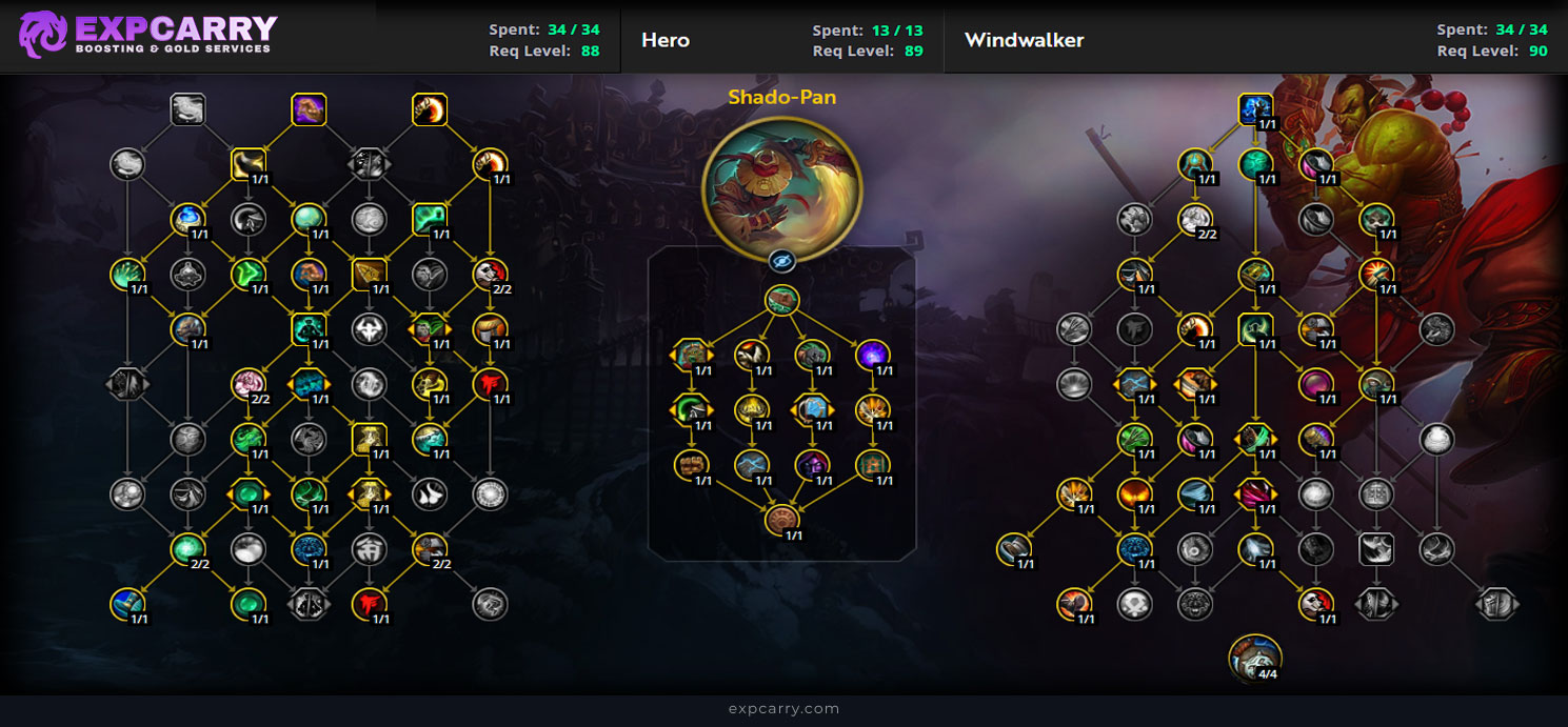 Windlaeufer-Moench in WoW Midnight Saison 1 bleibt eine mobile Nahkampf-DPS-Spezialisierung mit starkem Burst durch Schlag des Windlords und Xuen beschwoeren, exzellentem Cleave mit Wirbelnder Kranichtritt und Wirbelnder Drachenschlag sowie wertvoller Kontrolle durch Ring des Friedens, Beinschwung und Paralyse. In der aktuellen Saison ist Shado-Pan die Standardempfehlung fuer Heldentalente in Raids, Mythic+, und Tiefen, weil es starken Schaden liefert, ohne zusaetzliche Belastung fuer die Rotation hinzuzufuegen. Konduit der Himmlischen ist weiterhin spielbar, aber es ist die komplexere Alternative, die um Fenster mit Himmlischer Leitungsbahn und Herz der Jadeschlange aufgebaut ist, statt die uebliche Standardwahl zu sein.