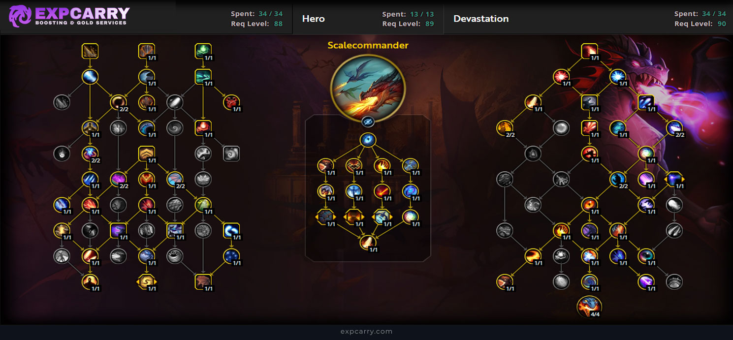 For raids, Devastation favors talent setups that improve burst consistency, strengthen empowered spell cadence, and keep Dragonrage windows efficient. Current raid talent choices are built around preserving strong single-target pressure while still carrying useful cleave into add waves and multi-target moments. Flameshaper remains a strong and common raid option because it reinforces the spec's normal rhythm around Fire Breath and spender timing, while Scalecommander stays viable for players and encounters that benefit more from its Deep Breath interaction and different burst profile.