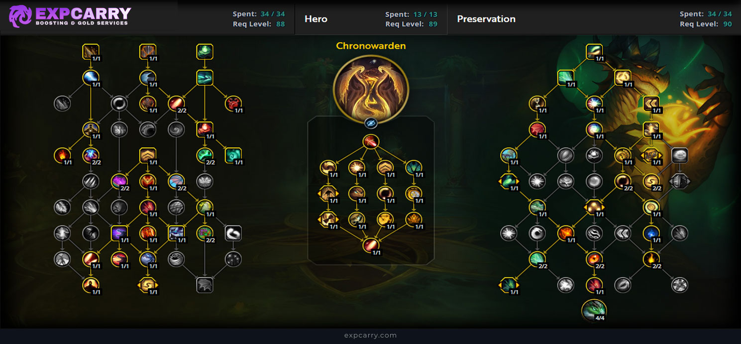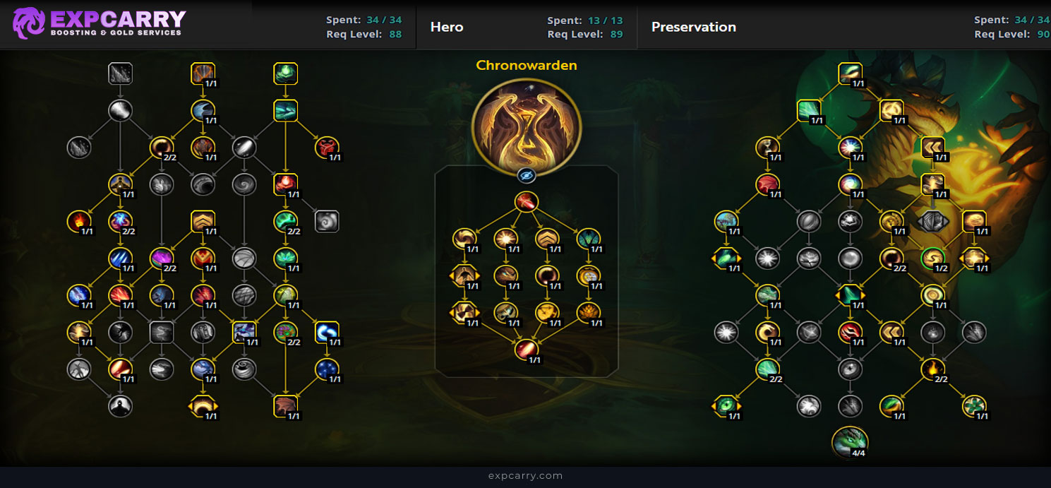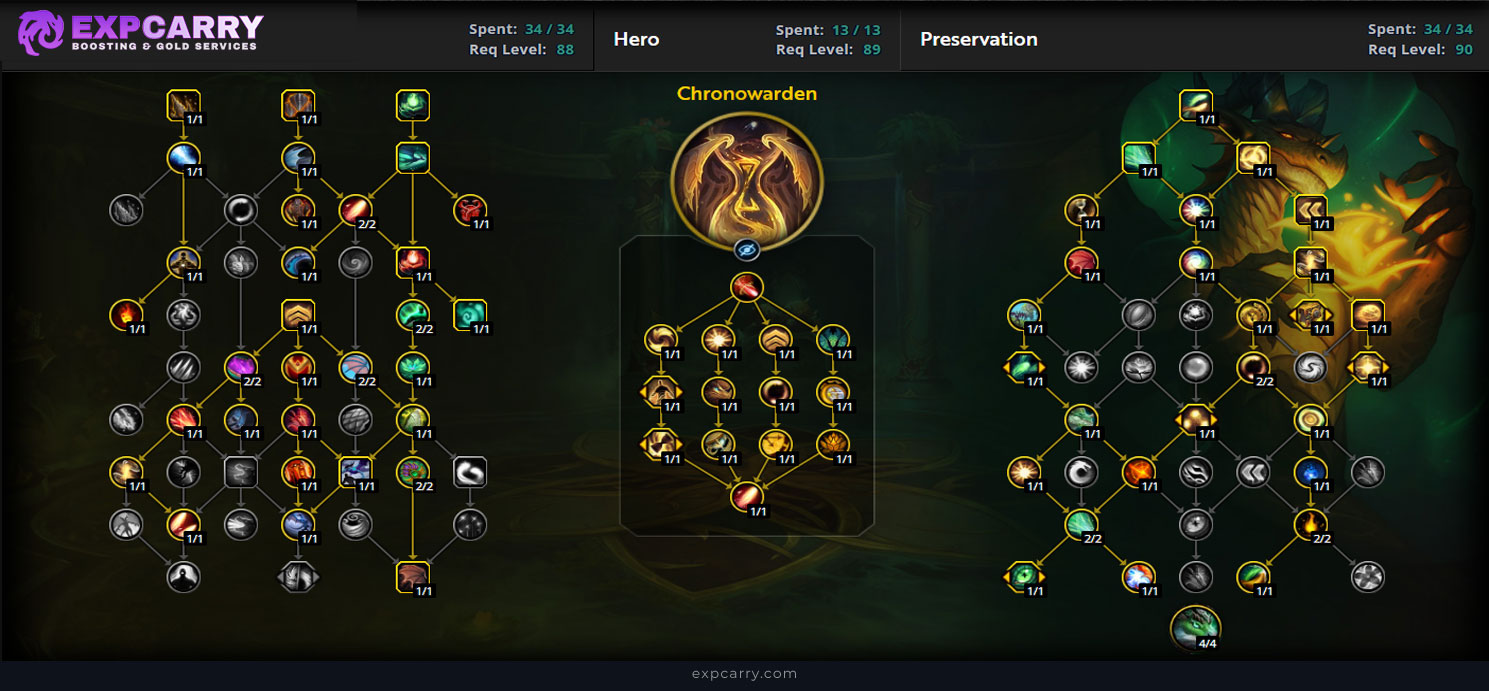 For raids, Preservation currently leans toward Chronowarden as the default hero tree because it offers the most stable overall performance, better control over raid patterns, and stronger value in standard progression environments. Flameshaper remains a legitimate alternative on encounters that reward heavier direct throughput and more aggressive healing windows. The right setup still depends on encounter structure and damage timing, but Chronowarden is the safer baseline instead of pretending both choices are equally favored at all times.